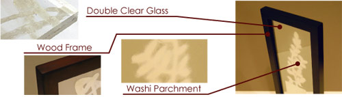 They were made with handmade washi and clear glass or acrylic plates, therefore their outstanding feature is their transparency. You can also enjoy them with candle light, sunlight etc.