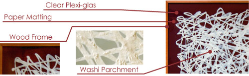 Description : wood frame(color : natural or white), clear plexi-glas, paper matting, and washi parchment(02-Kumo)