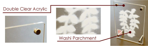 They were made with handmade washi and clear glass or acrylic plates, therefore their outstanding feature is their transparency. You can also enjoy them with candle light, sunlight etc.