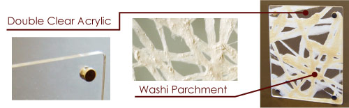 They were made with handmade washi and clear glass or acrylic plates, therefore their outstanding feature is their transparency. You can also enjoy them with candle light, sunlight etc.