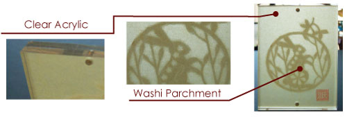 Description : fabricated polished edge acrylic, and washi parchment